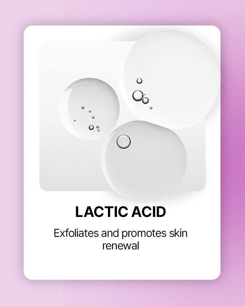 - Gently exfoliates with 2% Lactic Acid & Salicylic Acid.