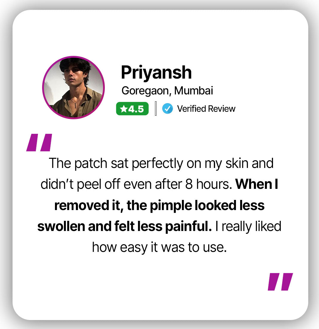Place the patch directly over the pimple and leave it on for 6–8 hours, or overnight, for best results.