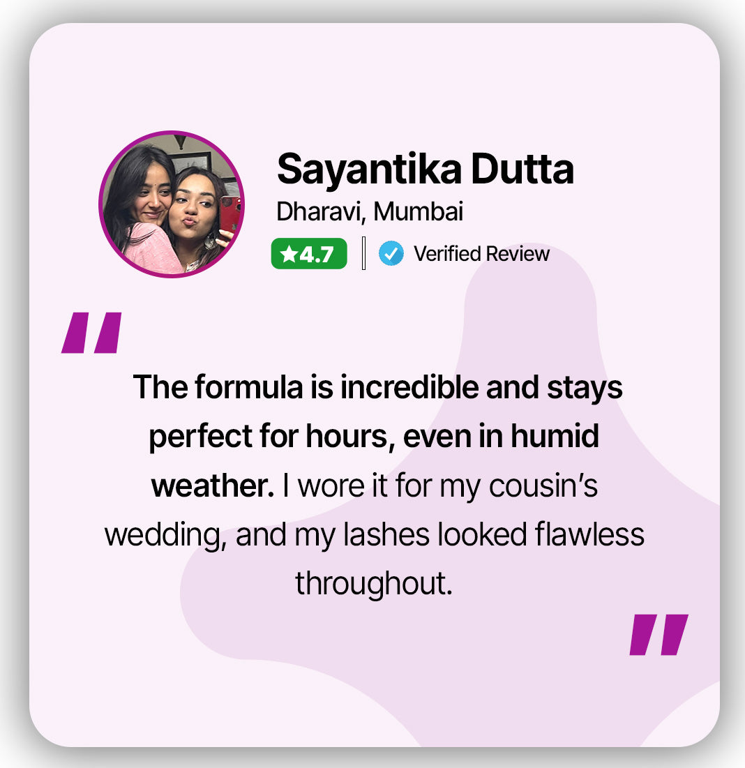 Not at all. We designed our Dark Spell 2-in-1 Mascara to stay put once applied. Its high-performance formula is entirely waterproof, smudge-proof, and flake-resistant, so your lashes remain beautifully defined no matter the weather, long hours, or busy days.