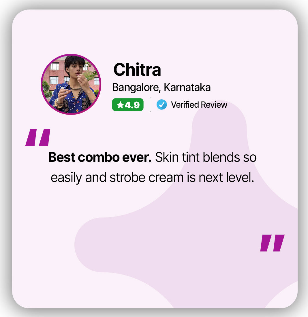 We created this combo to simplify your makeup routine. Our Skin Tint evens out your complexion with sheer-light coverage while our Pink Strobe Cream adds a soft rosy radiance that instantly brightens your face. Together they eliminate the need for heavy layers of makeup because they prep, perfect, and enhance your skin in one easy step.