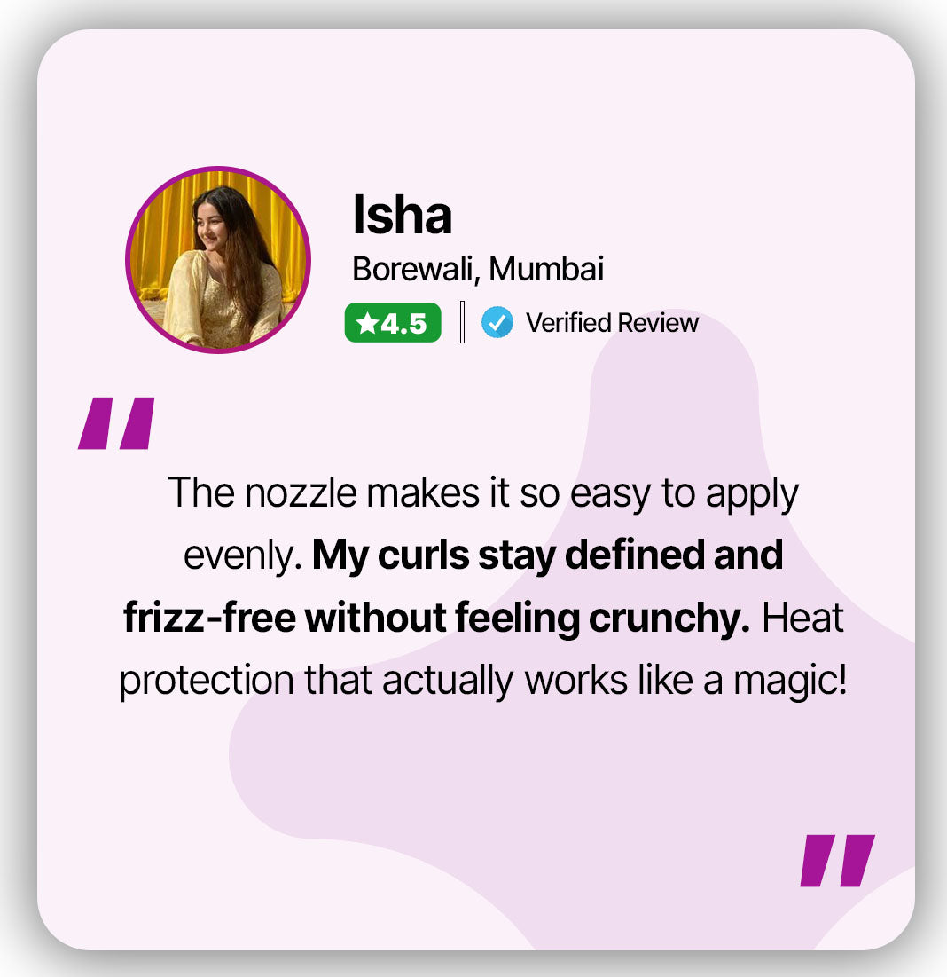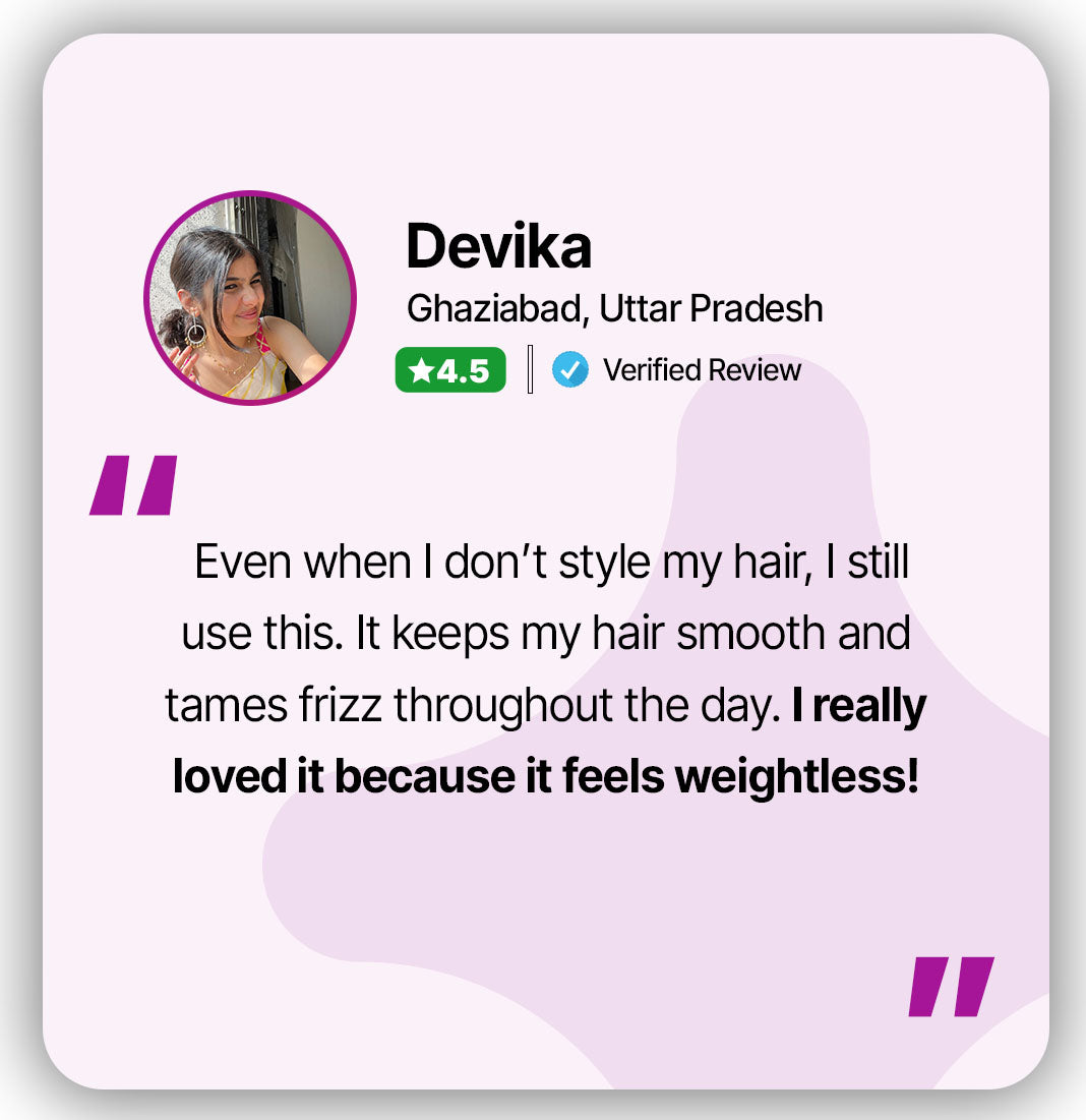 We know how frustrating it is when products leave your hair feeling weighed down. That’s why our formula is ultra-lightweight, non-sticky, and residue-free. It absorbs instantly, keeping your hair fresh, bouncy, and naturally beautiful; it is never greasy and always flawless.