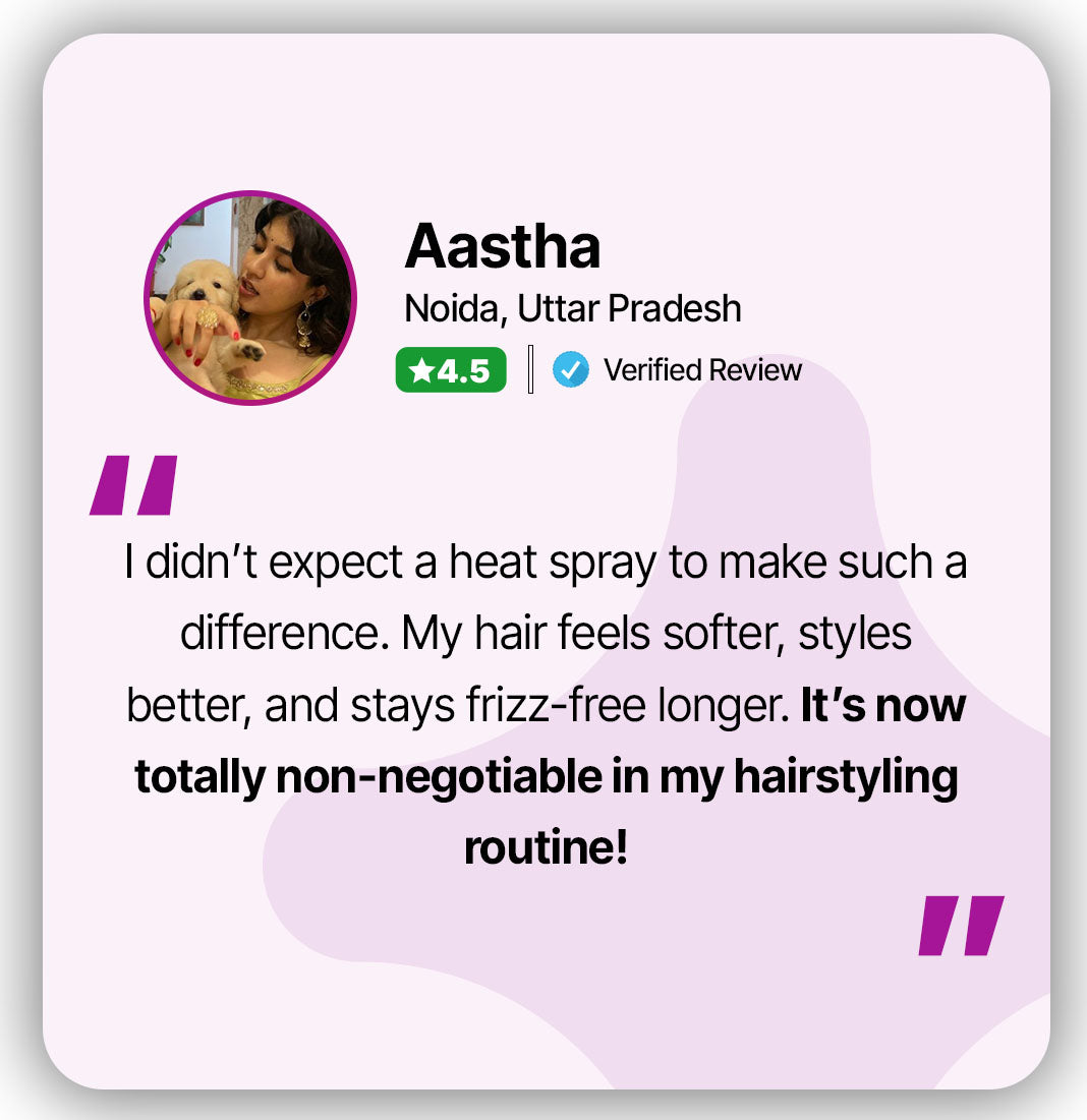 Yes, it can. Repeated heat styling can lead to breakage and split ends, but our heat protection spray is designed to stop that in its tracks. It forms a lightweight, invisible barrier that locks in moisture, shields against high temperatures, and helps minimize breakage over time. So you can style confidently, knowing your hair is protected and cared for daily.