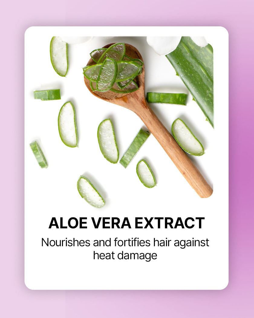 Crafted for advanced protection, our lightweight heat styling spray is enriched with aloe vera, argan oil, and bhringraj to nourish and protect each hair strand deeply. It helps prevent heat damage, controls frizz, and adds a salon-like shine, leaving your hair shiny, smooth, and effortlessly styled.