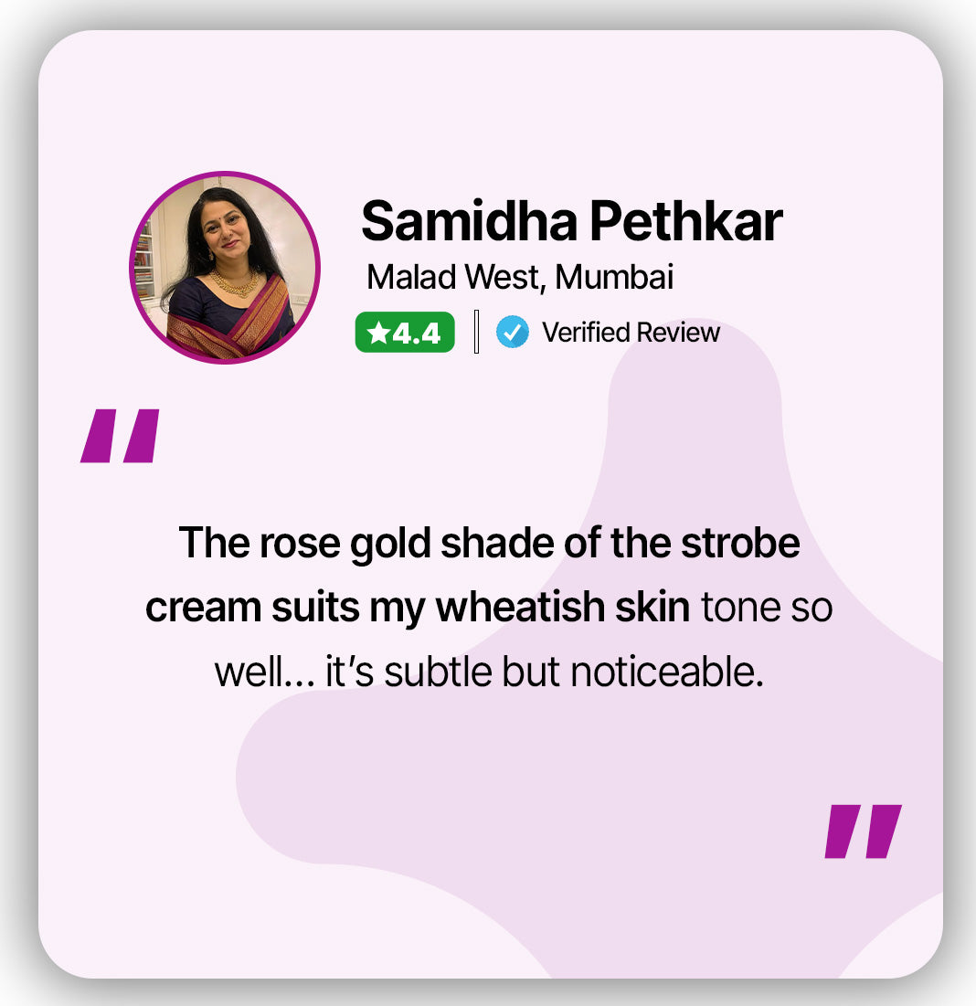 Our Prep & Glow combo is made to flatter textured, uneven skin. The primer smooths and blurs the look of pores, while Rose Gold Strobe Cream adds celeb-like glow, without settling into fine lines or bumps. Together, they create a soft-focus finish that enhances your skin’s natural radiance.