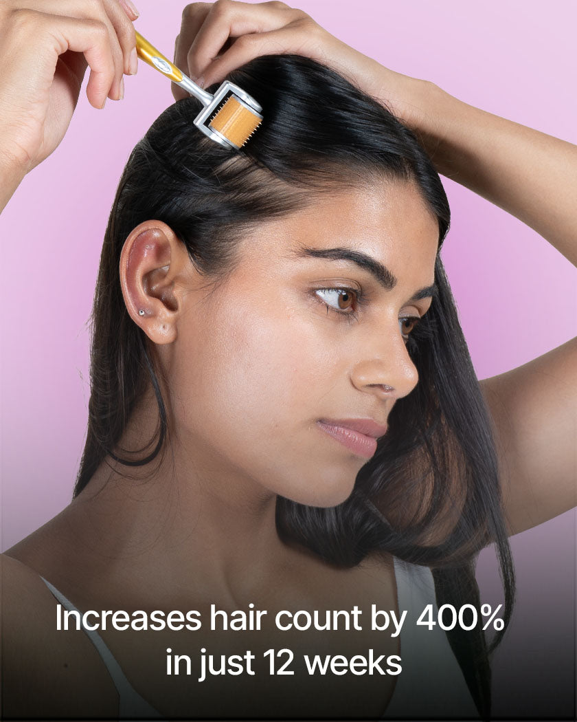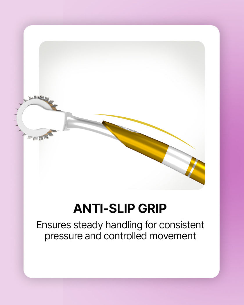 Not at all. The 1mm stainless steel needles create microchannels without cutting or scratching the skin. When used gently and correctly, it remains safe on both face and scalp, even if you’re new to derma rolling.