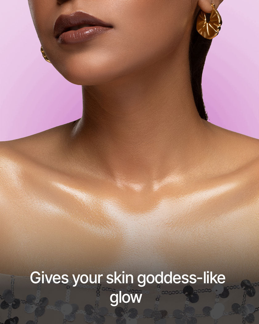 We have crafted our Body Glow Spray, with a lightweight, non-greasy formula that absorbs instantly and stays put. It melts effortlessly into your skin, leaving behind a radiant sheen. The result? Pure, wearable glow that won’t transfer onto your clothes.